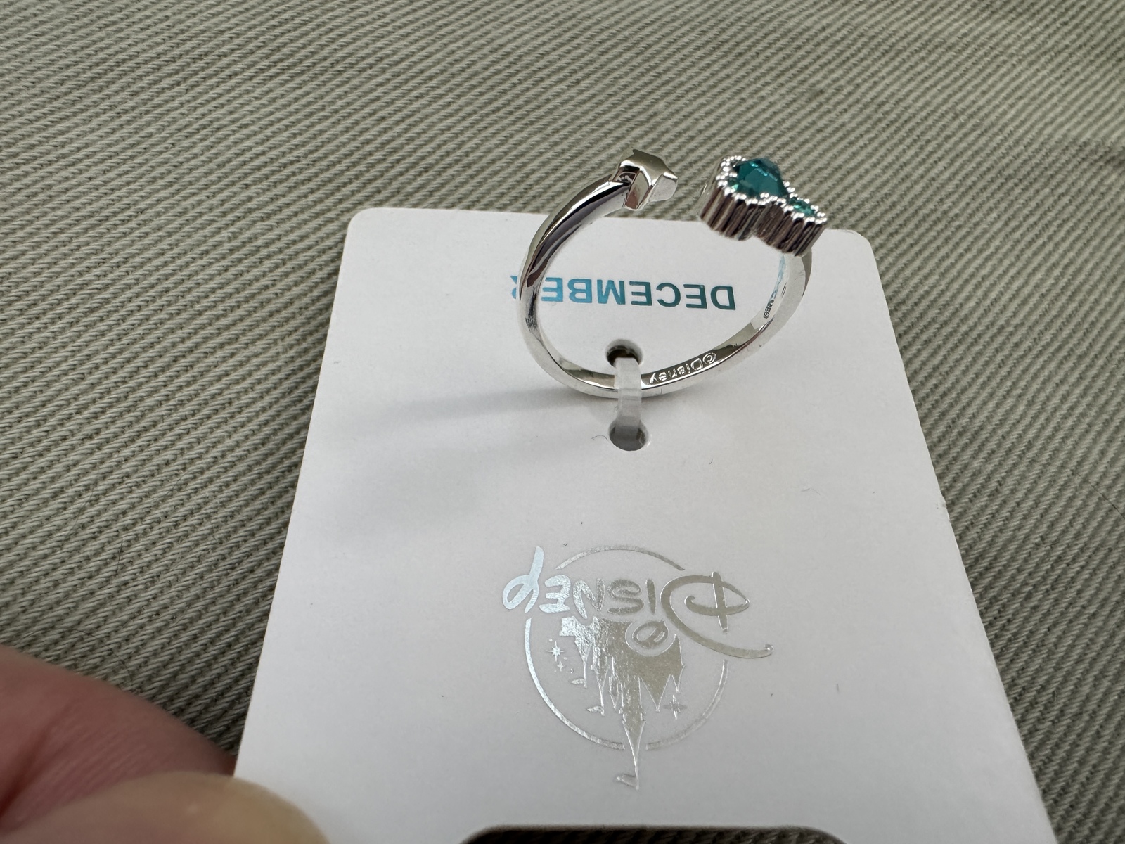 This is a brand new Disney Park exclusive Mickey Mouse faux gem blue zircon December birthstone ring. Adjustable. Silver color. Really cute and collectible. From smoke free environment.