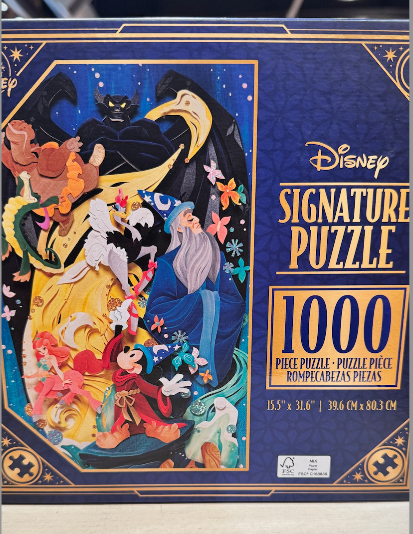 This is a Disney Parks Sorcerer's Apprentice Mickey Mouse 1000 pc Signature Puzzle.  By artist Ryan Riller. Measures approx. 15.5 x 31.6 inches when completed.  .